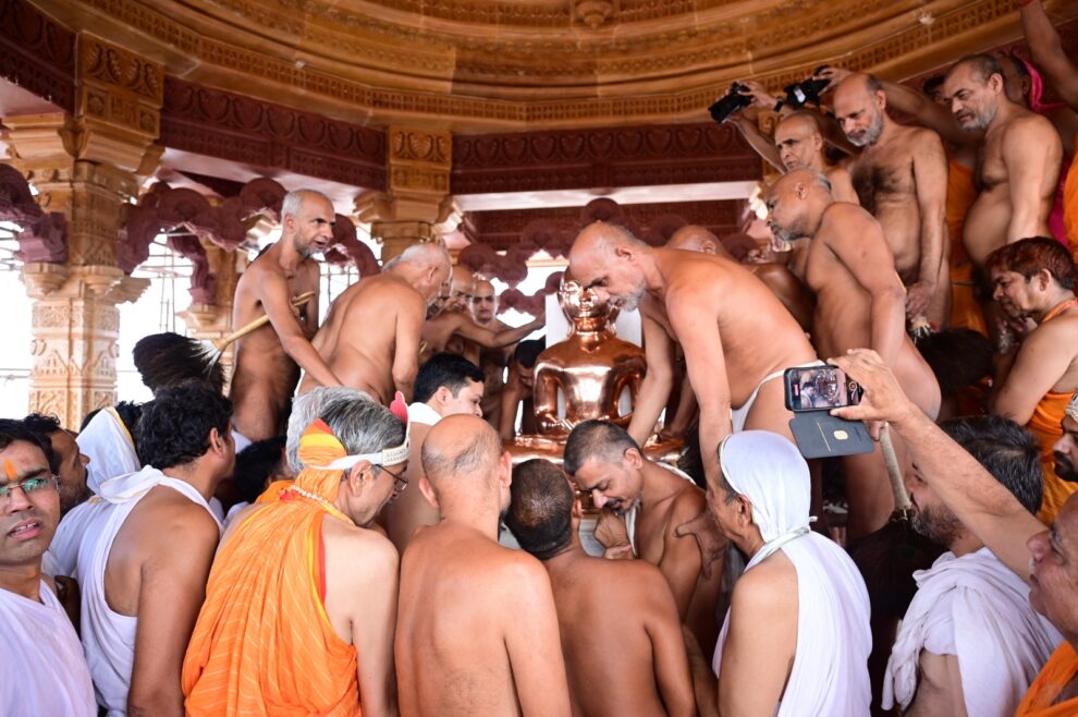 सुप्रसिद्ध सिद्ध क्षेत्र कुंडलपुर में युग श्रेष्ठ संत शिरोमणि आचार्य श्री विद्यासागर जी महाराज के परम प्रभावक शिष्य विद्या शिरोमणि आचार्य श्री समय सागर जी महाराज के चतुर्विध संघ के सानिध्य में बड़े बाबा जिनालय का कलशारोहण एवं सहस्त्रकूट जिनालय वेदी प्रतिष्ठा का अभूतपूर्व आयोजन चल रहा है। 9 जून को प्रातः अभिषेक, शांतिधारा, नित्यमह पूजन उपरांत सहस्त्रकूट मानस्तंभ, मुनिसुब्रतनाथ जिनालय वेदी शुद्धि संस्कार के उपरांत मानस्तंभ में श्री जी की प्रतिमाओं की स्थापना आचार्य संघ के मंगल सानिध्य में की गई। पढ़िए राजीव सिंघई मोनू की रिपोर्ट…