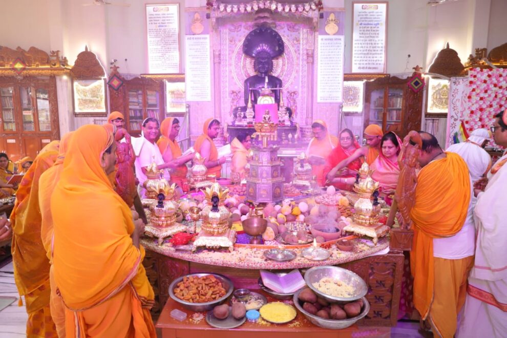 कमला नगर शालीमार एन्क्लेव स्थित श्री 1008 पार्श्वनाथ दिगंबर जैन मंदिर में चल रहे श्री सिद्धचक्र महामंडल विधान एवं विश्वशांति महायज्ञ में शनिवार को अभिषेक शांतिधारा मनोज जैन और समकित जैन ने की और इस दिन 1024 अर्घ्य समर्पित किए गए। पढ़िए राहुल जैन की रिपोर्ट…