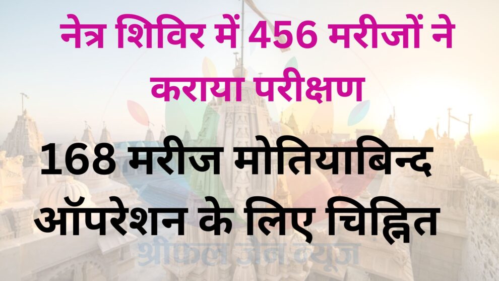समाजसेवी स्व.कपूरचन्द जैन (एडवोकेट) की स्मृति में डॉ. भसीन द्वारा स्थापित रतन ज्योति चैरिटेबल फाउण्डेशन (ट्रस्ट) ग्वालियर के सहयोग से जिनेश जैन पूर्व अध्यक्ष, नगरपालिका अम्बाह, जिला उपाध्यक्ष, भाजपा जिला-मुरैना के द्वारा 21वां निःशुल्क मोतियाबिन्द ऑपरेशन परीक्षण शिविर का आयोजन श्री टेक चन्द जैन विद्यालय प्रांगण, अम्बाह में आयोजित किया गया। पढ़िए यह विशेष रिपोर्ट…