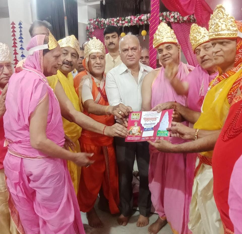 जयपुर। श्री दिगंबर जैन मंदिर गायत्री नगर, महारानी फार्म में आयोजित सिद्ध चक्र महामंडल विधान के पांचवें दिन 21 मार्च को नित्य नियम की पूजा व शांति धारा के पश्चात 256 अर्घ्य भक्ति भाव से समर्पित किए गए। मंदिर प्रबंध समिति के अध्यक्ष कैलाश छाबड़ा ने बताया कि विधान के समय वैशाली नगर पंचकल्याणक महोत्सव 27 मार्च से 21 अप्रैल परम पूज्य आचार्य श्री सुनील सागर जी महाराज ससंघ सानिध्य में जो हो रहा है, उस महोत्सव समिति के पदाधिकारीगण ने उपस्थित होकर पत्रिका का विमोचन कराया एवं मंदिर प्रबंध समिति गायत्री नगर के पदाधिकारियों को पत्रिका भेंट की।