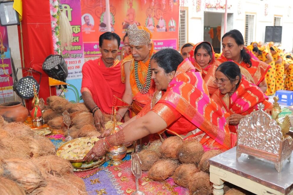 आचार्य श्री चैत्यसागर जी महाराज ससंघ के मंगल सानिध्य में मोती कटरा स्थित श्री पार्श्वनाथ दिगंबर जैन मंदिर के वात्सल्य संत निलय में अष्टाहनिका महापर्व के पावन अवसर पर सिद्धचक्र महामंडल विधान एवं विश्व शांति महायज्ञ के छठे दिन अर्घ्य समर्पित किए गए। पढ़िए शुभम जैन की विस्तृत रिपोर्ट…