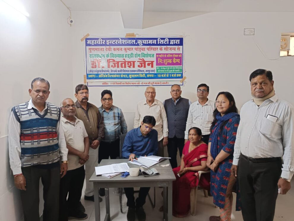 कुचामन सिटी। महावीर इंटरनेशनल कुचामन सिटी के तत्वाधान में श्रीमती गुणमाला देवी कमलकुमार पाण्ड्या के सौजन्य से 28वां निःशुल्क हड्डी, जाँच जॉइन्ट, लिगामेंट, घुटना रिप्लेसमेंट सर्जरी विशेषज्ञ डॉ. जितेश जैन (राजस्थान हॉस्पिटल, जयपुर) अरिहंत हेल्थ केयर सेन्टर राजकीय चिकित्सालय के पास 2 मार्च 2025, रविवार को आयोजित किया गया।