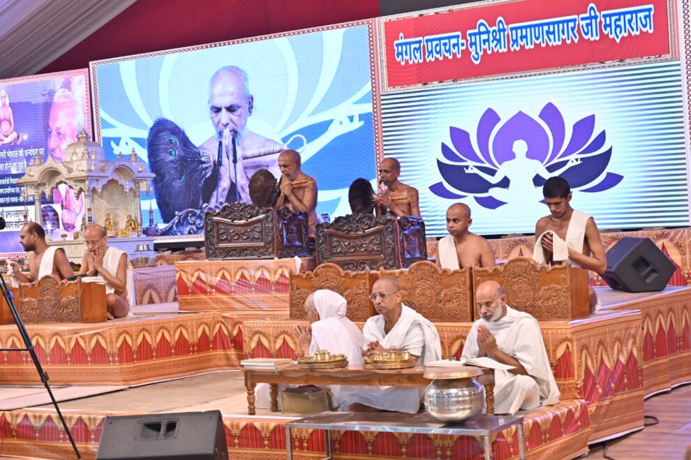 विधानाचार्य एवं संगीतकार की स्वरलहरियों के साथ कार्यक्रम की शुरूआत हुई। पांडुक शिला पर अभिषेक विधि को संपन्न कराया गया एवं मुनि श्री के मुखारबिंद से विश्व में शांति स्थापित हो कि मंगलभावना से शांतिधारा हुई। इस अवसर पर मुनि श्री प्रमाण सागर महाराज ने श्री सिद्धचक्र महामंडल विधान की महिमा को सुनाते हुए कहा यह सर्व विधानों में श्रेष्ठतम सभी प्रकार की विघ्न बाधा को दूर करने वाला तथा विशुद्धि को बढ़ाने वाला सभी सिद्ध परमात्माओं की वृहद स्तुति करने वाला विधान है। उन्होंने कहा कि यहां पर श्री सिद्ध चक्र महामंडल विधान की स्थापना मूल बीजाक्षरों से युक्त मंत्र एवं ‘अ‘ से लेकर ‘ह’ तक सभी अक्षरों के साथ की गई है,जो इस बात का प्रतीक है।,लोक में जितने भी मंत्र है उन सभी मंत्रों के बीज यंहा इस मंडल में मौजूद है। उन सभी मंत्रों की आराधना इन आठ दिनों में यहां पर संपन्न होगी।
