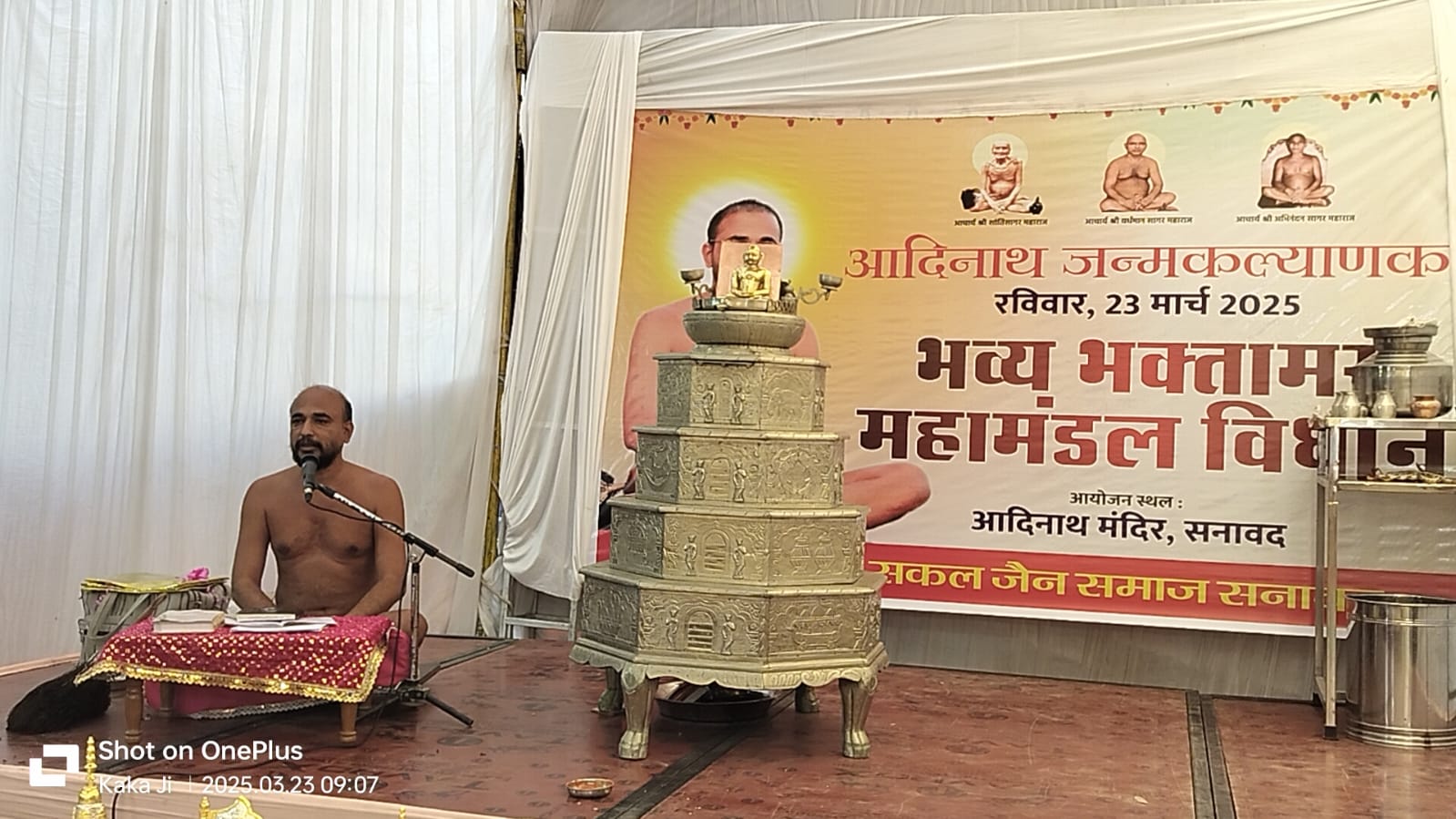 सनावद। त्याग एवं संयम के लिए जाने वाले नगर में विराजमान अंतर्मुखी मुनिश्री पूज्य सागर जी महाराज के सानिध्य में भगवान आदिनाथ जन्म कल्याणक महोत्सव के पावन अवसर पर श्रीआदिनाथ मंदिर में आर्यिका पूर्णमति माताजी द्वारा रचित भक्तामर विधान रचाया गया। सन्मति जैन काका ने बताया कि भगवान आदिनाथ के जन्म कल्याणक के अवसर पर मुनिश्री पूज्य सागर जी के सानिध्य में भगवान आदिनाथ का जन्म कल्याणक महोत्सव धूमधाम से मनाया गया।