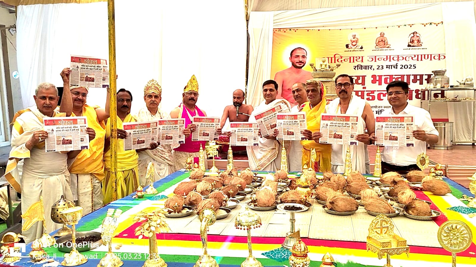 भगवान आदिनाथ जन्म कल्याणक महोत्सव के अवसर पर मुनि श्री पूज्य सागर जी महाराज की प्रेरणा एवं आशीर्वाद से इंदौर से निकलने वाली श्रीफल पत्रिका का विमोचन समाज के मनोज जैन, संतोष बाकलीवाल, विजय काला, पवन गोधा, आशीष झांझरी, प्रशांत जैन, वैभव जैन, सुधीर जैन, सुनील जैन, मुकेश जैन, राजा जैन ने किया। इसी कड़ी में रात्रि में मुनिश्री के सानिध्य में आनंद की यात्रा गुरु भक्ति एवं कमल जैन पार्टी द्वारा सुमधुर भजनों की प्रस्तुति दी गई। इस अवसर पर सभी समाजजन उपस्थित थे।