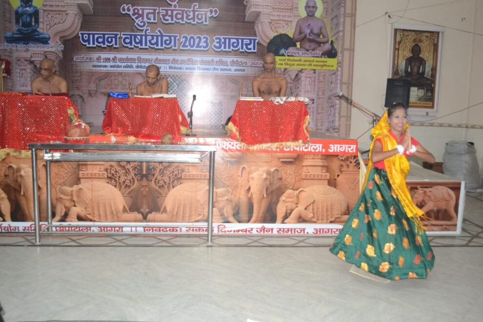 आगरा। निर्मल सेवा सदन छीपीटोला में विराजमान आचार्य श्री विशुद्ध सागर जी महाराज के परम् प्रिय शिष्य परम पूज्य मुनि श्री 108 साक्ष्य सागर जी महाराज, मुनि श्री 108 योग्य सागर जी महाराज, मुनि श्री 108 निवृत सागर जी महाराज जी संसघ के सानिध्य में मुनि श्री 108 योग्य सागर जी महाराज का चौथा मुनि दीक्षा समारोह बड़े धूमधाम से मनाया गया। सबसे पहले दीप प्रज्वलन के बाद महिला मंडल द्वारा सुन्दर मंगलाचरण किया गयाl