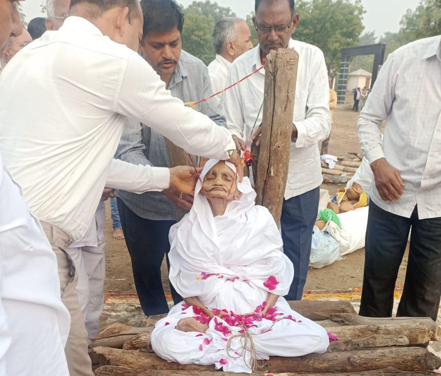 आचार्य श्री वर्धमान सागर से दीक्षित शिष्या 86 वर्षीय आर्यिका श्री तपनमति जी का 26 दिसंबर को रात्रि 10.28 बजे पारसोला राजस्थान में समस्त संघ सानिध्य में समाधिमरण हुआ। सुबह 8 बजे समाधिस्थ 86 वर्षीय आर्यिका श्री तपनमति मति जी का डोला विमान यात्रा आचार्य श्री वर्धमान सागर जी संघ सानिध्य और हजारों श्रद्धालुओं की उपस्थिति में निकाली गई।पढ़िए राजेश पंचोलिया की एक रिपोर्ट…