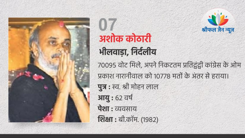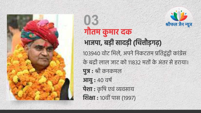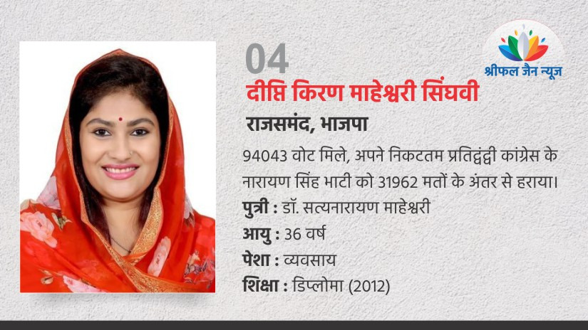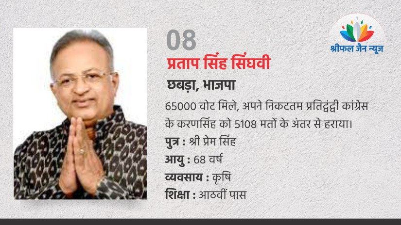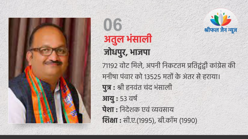 जयपुर। राजस्थान विधानसभा के वर्ष 2023 के चुनावों में 9 जैन विधायकों ने विजय प्राप्त की है, इसमें से 6 भाजपा से, 2 कांग्रेस से और एक ने निर्दलीय के रूप में चुनाव लड़ा था। जानते हैं इन सभी का एक संक्षिप्त परिचय