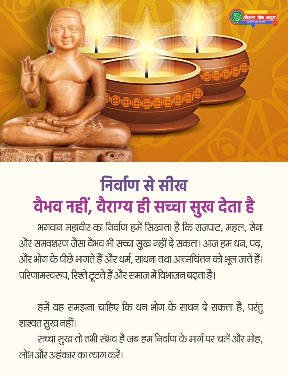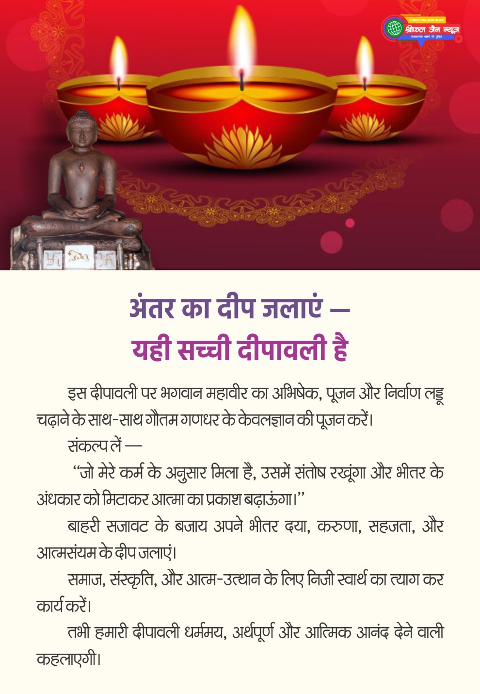 सच्ची दीपावली वह है, जब भीतर का अंधकार मिटे और आत्मा में प्रकाश फैले