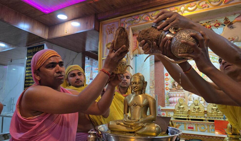 शहर स्थित श्री 1008 चंद्रप्रभु दिगंबर जैन मंदिर, गौरी किनारा में दिनांक 30 मार्च 2026 को भगवान महावीर स्वामी के जन्म कल्याणक महोत्सव के अवसर पर श्री 1008 महावीर भगवान विधान का आयोजन अत्यंत भक्ति भाव के साथ संपन्न हुआ। प्रातः 7 बजे भगवान महावीर पर प्रथम कलश करने का सौभाग्य श्रीमती सुशीला जैन एवं मनोज जैन (मुंबई) को प्राप्त हुआ। पढ़िए सोनल जैन की रिपोर्ट…