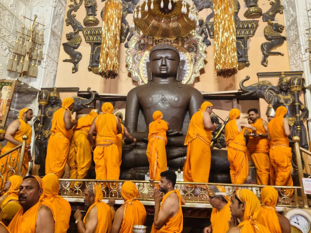 प्रचार मंत्री जयकुमार जैन ‘जलज’ ने जानकारी देते हुए बताया कि प्रथम अभिषेक, शांतिधारा एवं ऋद्धि कलश का सौभाग्य विभिन्न स्थानों से आए श्रद्धालु परिवारों को प्राप्त हुआ। इनमें शक्ति, सुरभि, दीपांश, सुशीला जैन (छिंदवाड़ा), अनिल, शांतिलाल, निखिल, हिमांश जैन (बांसवाड़ा), अनिकेत, अवधेश जैन (टीकमगढ़), नितिन, अक्षत जैन (फिरोजाबाद), कमला, अशोक, भानु, नेहा, हर्ष जैन (बेगमगंज), शांतिलाल, सुशील कुमार जैन (जयपुर), शिखरचंद्र, रविकांत, सचिन, लक्ष्य जैन (शिवपुरी), राजकुमार, राहुल, सर्वज्ञ, राजीव जैन (सागर), आकांक्षा, शिल्पी, कुसुम देवी जैन (सागर), अंकित, अनंत, श्रेयांश जैन (गाजियाबाद), सचिन, मोहिनी, अपेक्षा, आदिति जैन (इंदौर) तथा शैंकी, राजकुमार पाटनी (मंदसौर) सहित बड़ी संख्या में श्रद्धालु शामिल रहे।