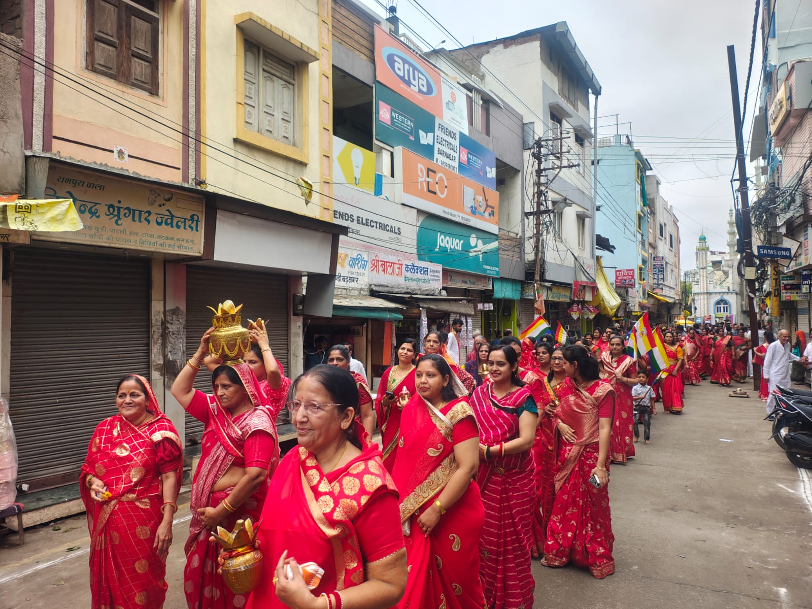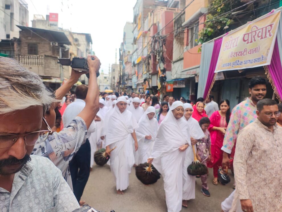 बड़नगर। आचार्य श्री विराग सागरजी महाराज की शिष्या आर्यिका श्री विशाश्री माताजी 16 आर्यिका माताजी का संसघ का मालवा की धर्मनगरी बड़नगर में शनिवार को भव्य मंगल प्रवेश हुआ। आर्यिका माताजी संसघ की भव्य अगवानी में विधायक जितेन्द्र पंड्या, नगरपालिका अध्यक्ष अभय टोंग्या, पूर्व विधायक मुरली मोरवाल, नरेन्द्रसिंह राजावत, अशोक गोधा, गुणवन्त टोंग्या, नवीन काला, संजय पाटनी, अशोक शाह, नरेंद्र शाह, संजय बिलाला, प्रमोद गोधा, संजय पापलिया, मनोज बिलाला, सुनील कासलीवाल, प्रदीप गदीया, नवीन बिलाला, जितेन्द्र कासलीवाल नमन बाकलीवाल, रजत टोंग्या, सार्थक वेद आदि सभी वरिष्ठ समाजजन शामिल रहे। इन्होंने माताजी की अगवानी की।