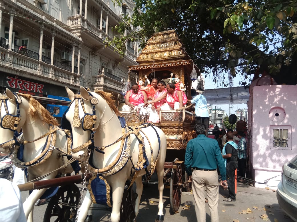 इंदौर। दिगंबर जैन समाज, सामाजिक संसद, इंदौर के तत्वावधान में महावीर जन्म कल्याणक के अवसर पर गुरुवार को दोपहर 2:30 बजे कांच मंदिर इतवारिया बाजार से भव्य स्वर्ण रथ शोभा प्रारंभ हुई । समाज के अध्यक्ष राजकुमार पाटोदी एवं प्रचार प्रमुख सतीश जैन ने बताया कि कार्यक्रम के मुख्य अतिथि प्रकाश मोदी, सदस्य अल्पसंख्यक आयोग, दिल्ली थे। स्वर्ण रथ के सारथी बनने का सौभाग्य प्राप्त किया मुकेश- चंदन बाला पाटोदी परिवार ने। जुलूस प्रारंभ कर्ता थे नवीन शिवानी गोधा परिवार। सम्नवयक थे विनय बाकलीवाल।