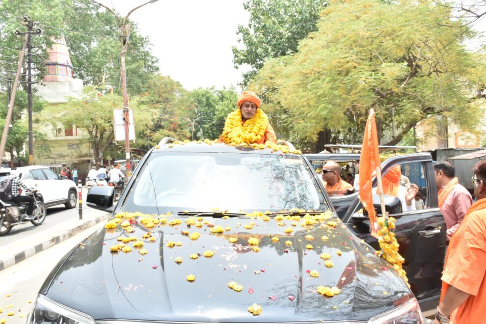 नगर में स्वागत में अनेक स्थानों पर पुष्पवर्षा की गई। यह शोभायात्रा होटल आर्यन इन से गल्ला मंडी इलाइट चौराहा से घंटाघर चौक पहुंची। जहां गो भक्तों ने विश्वहिन्दू महासंघ के पदाधिकारियों का स्वागत किया। जहां से पदयात्रा के साथ शोभायात्रा सावरकर चौक जहां से तुवन मंदिर के दर्शन के उपरांत अभिनंदनोदय तीर्थ क्षेत्रपाल जैन मंदिर में प्रभु दर्शन किए। जहां से राजकीय बालिका इंटर कॉलेज पहुंची। सभागार में राष्ट्रीय अध्यक्ष योगी आदित्यनाथ मुख्यमंत्री उप्र के जन्मोत्सव कार्यक्रम का शुभारंभ गोरक्षा पीठाधीश्वर महंत अवैधनाथ महाराज के चित्र के सम्मुख दीप प्रज्वलित कर अतिथियों द्वारा किया गया। राजकीय बालिका इंटर कॉलेज की बालिकाओं ने सरस्वती वंदना की प्रस्तुति की।