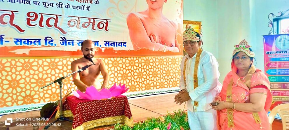 सनावद। अंतर्मुखी मुनि पूज्य सागर महाराज के मुखारविंद से आदिनाथ कथा का प्रारंभ हुआ। विपिन कुमार- प्रीति जैन को मुख्य श्रोता बनने का सौभाग्य प्राप्त हुआ। साथ ही, सभा में दीप प्रज्ज्वलन और शास्त्र भेंट भी इन्हीं के द्वारा किया गया।