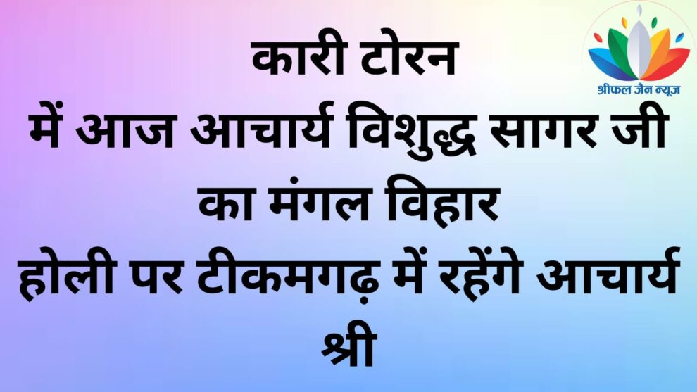 २२ फ़रवरी को आचार्य श्री का रात्रि विश्राम सरकारी शाला खुटकुवा में हुआ। वहीं आज सुबह २३ फ़रवरी को आचार्य श्री का भव्य मंगल प्रवेश कारी टोरन में होगा।मूल नायक अतिशय कारी भूगर्भ से प्राप्त भगवान श्री 1008 अरहनाथ जी का महा मस्तिकाभिषेक महोत्सव नवागढ़ जिला ललितपुर में होगा ।