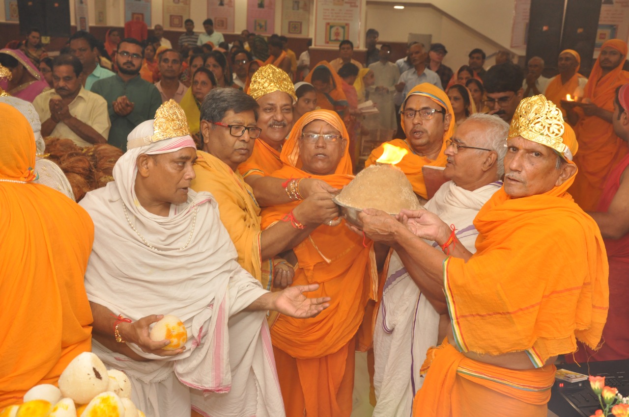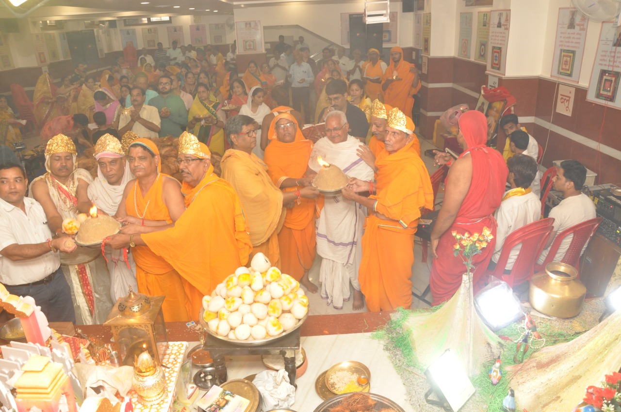 इसके बाद माताजी ने मंगल प्रवचन देते हुए कहा कि किस प्रकार 700 मुनिराजों पर उपसर्ग हुए और विष्णु कुमार मुनि और अकंपनाचार्य महाराज जी ने किस प्रकार रक्षाबंधन विधान रचाकर उन मुनिराजों की रक्षा की। विशेष रूप से सभी भक्तों ने एक दूसरे को राखी के रूप में रक्षा सूत्र बांधा। भक्तों ने विधानाचार्य प. राकेश जैन ब्रह्मचारी के कुशल निर्देशन में मंत्र उच्चारण के साथ शशि जैन पाटनी के संगीतमय भजनों के साथ विधान की मांगलिक क्रियाएं संपन्न की। विधान के पश्चात जैन धर्म के 11वें तीर्थंकर श्री श्रेयांसनाथ भगवान के मोक्ष कल्याणक दिवस पर निर्वाण लाड़ू हर्षोल्लास पूरे भक्ति के साथ प्रभु चरणों में समर्पित किया गया। इस अवसर पर जगदीश जैन, सुरेश पांड्या, अनिल जैन एफसीआई, महेश चंद जैन एसबीआई, नरेन्द्र जैन, मुकेश रेपरिया, हरीश चंद जैन नायक, मीडिया प्रभारी शुभम जैन, अंकेश जैन, समकित जैन समेत बड़ी संख्या में लोग उपस्थित रहे।