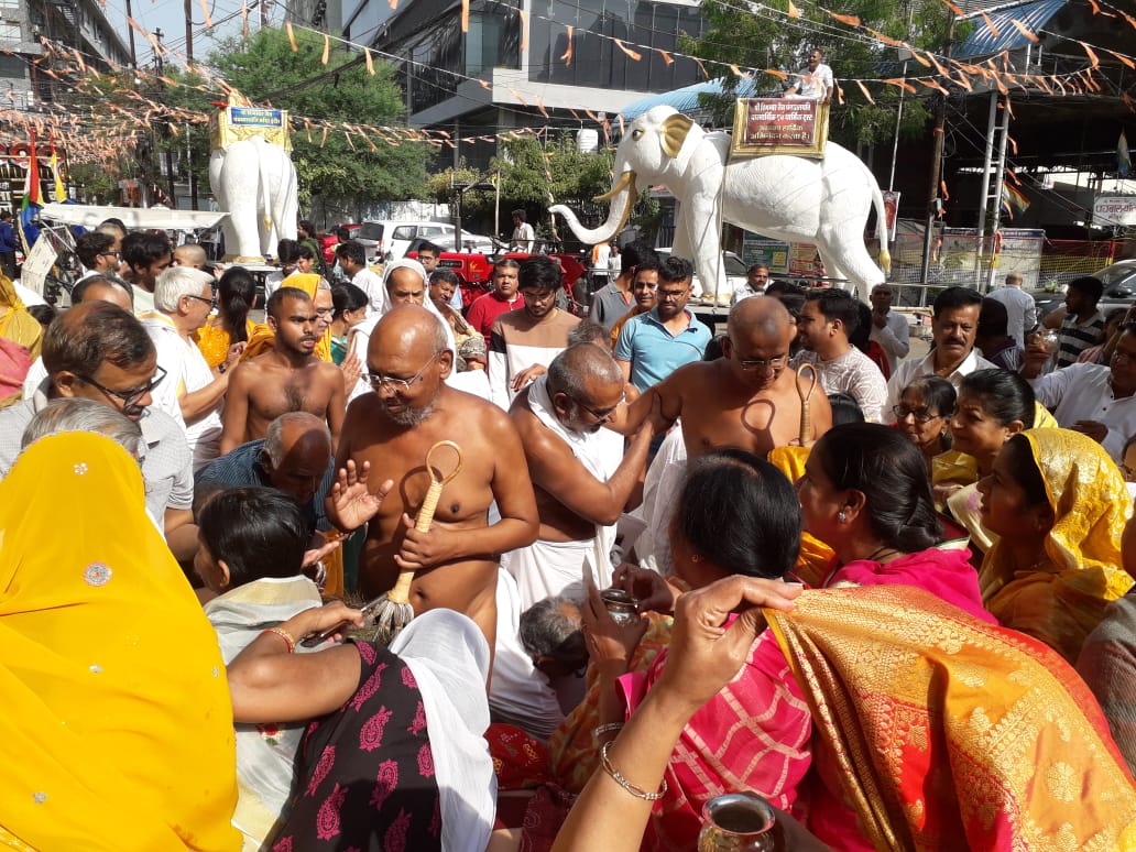 पंचवालयति दिगम्बर जैन मंदिर में आचार्यश्री उदार सागर जी महाराज, मुनि श्री उपशांत सागर जी महाराज संसघ का मंगल प्रवेश हुआ। प्रवेश द्वार पर 108 थालियों में महाराज श्री के चरणों का पादप्रक्षालन किया गया और भव्य मंगल आगवनी की गई। इसके बाद आचार्य श्री के मंगल प्रवचन में हुए। पढ़िए राजेश जैन दद्दू की रिपोर्ट….