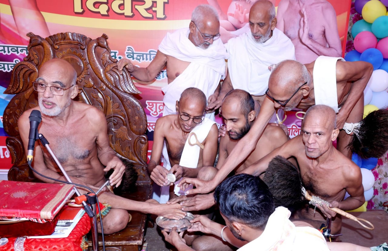 इस मौके पर आचार्य श्री ने दिगंबर साधुओं की चर्चा को उत्कृष्ठ बताते हुए कहा कि आचार्य श्री विद्या सागरजी तप और त्याग की प्रतिमूर्ति थे। उन्होंने सर्वाधिक श्रावकों को धर्म से मोक्ष का मार्ग प्रशस्त किया और उत्कृष्ठ चर्या धारण कर समाधिस्थ हुए। आचार्य श्री निर्भय सागरजी ने संघ के संचालन एवं स्वाध्याय साधना को सुनिश्चित करने के उददेश्य से अपने संघस्थ ज्येष्ठ श्रमण मुनि श्री शिवदत्त सागर महाराज को निर्यापक श्रमण मुनि के संस्कार किए। संघस्थ मुनिश्री शिवदत्त सागर जी, मुनिश्री सुदत्त सागरजी, मुनिश्री मूदत्त सागरजी, मुनिश्री पदमदत्त सागरजी, मुनिश्री गुरुदत्त सागरजी, मुनिश्री मेघदत्त सागरजी, मुनिश्री वृषभ दत्त सागरजी, क्षुल्लक श्री चंददत्त सागरजी एवं श्रीदत्तसागर जी ने आचार्य श्री का पाद प्रक्षालन कर आर्शीवाद लिया।