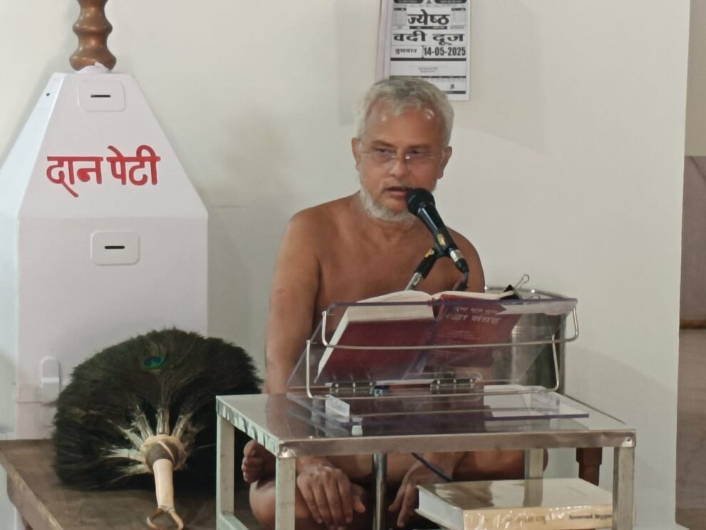 इंदौर। आचार्य श्री विभक्त सागरजी नवग्रह जिनालय ग्रेटर बाबा में विराजमान हैं। पिछले 11 दिनों से आचार्यश्री का सानिध्य मिल रहा है। बुधवार को आचार्यश्री विभक्त सागर जी महाराज के सानिध्य में अभिषेक, शांतिधारा कर पुण्यार्जन किया। महाराज श्री के श्री मुख से अमृत वाणी प्रवचन का धर्मलाभ प्राप्त किया जा रहा है। श्रावक-श्राविकाओ ने नवधा भक्ति पूर्वक पड़गाहन कर मुनिराज को आहार कराया। आहार चर्या का सौभाग्य गजेद्र अनिता जैन परिवार को मिला। ग्रेटर बाबा के निज निवास गजेद्र अनिता जैन परिवार ने आचार्यश्री की आहार चर्या को संपन्न कराया। समाजजनों ने गजेंद्र अनिता जैन परिवार के पुण्य की कोटि-कोटि अनुमोदना करते हुए उन्हें बधाई और शुभकामनाएं दी हैं।