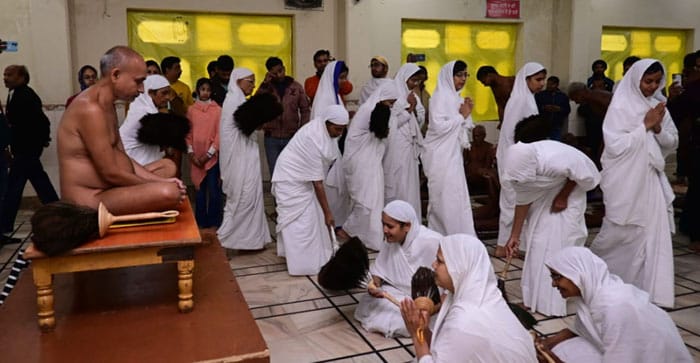 आगरा। भावलिंगी संत श्रमणाचार्य श्री 108 विमर्शमागर जी महामुनिराज धर्मनगरी आगरा के छीपीटोला श्री चन्द्रप्रभ जैन मंदिर विराग भवन में विराजमान हैं। आचार्य श्री विमर्शसागर जी महामुनिराज के पावन दर्शन के लिए गणिनी आर्यिका श्री आर्षमति माताजी पधारीं। आर्यिका श्री ने आचार्य भगवन के दर्शनकर भक्तिवश गुरुवर की त्रय परिक्रमा लगाकर द्वय चरण कमलों का पाद प्रक्षालन कर अपने मस्तक पर धारण किया। उपस्थित विशाल धर्मसभा के मध्य आर्यिका श्री ने गुरुवर के चरणों में श्रद्धा शब्द पुष्य समर्पित करते हुए कहा कि मेरा परम सौभाग्य पुण्य उदय में आया, जो आज मुझे भगवान के समान साक्षात् आचार्य गुरुवर के दर्शन प्राप्त हुए हैं।