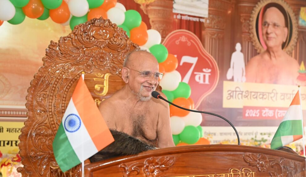 टोंक में 15 अगस्त के अवसर पर आचार्य श्री वर्धमान सागर जी ने तिरंगे के रंगों और अशोक चक्र के माध्यम से देशभक्ति और आध्यात्मिकता का संदेश दिया। उन्होंने स्वतंत्रता के महत्व, जैन धर्म के योगदान और व्यसन व आधुनिक शिक्षा पर विचार साझा किए। पढ़िए राजेश पंचोलिया की ख़ास रिपोर्ट…