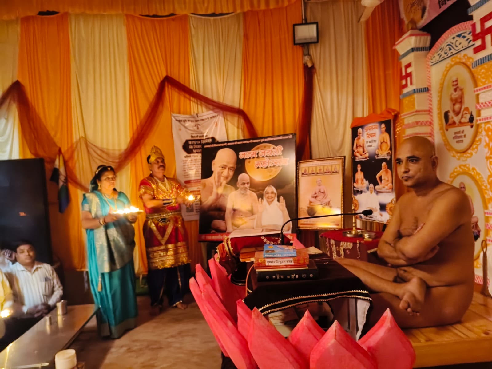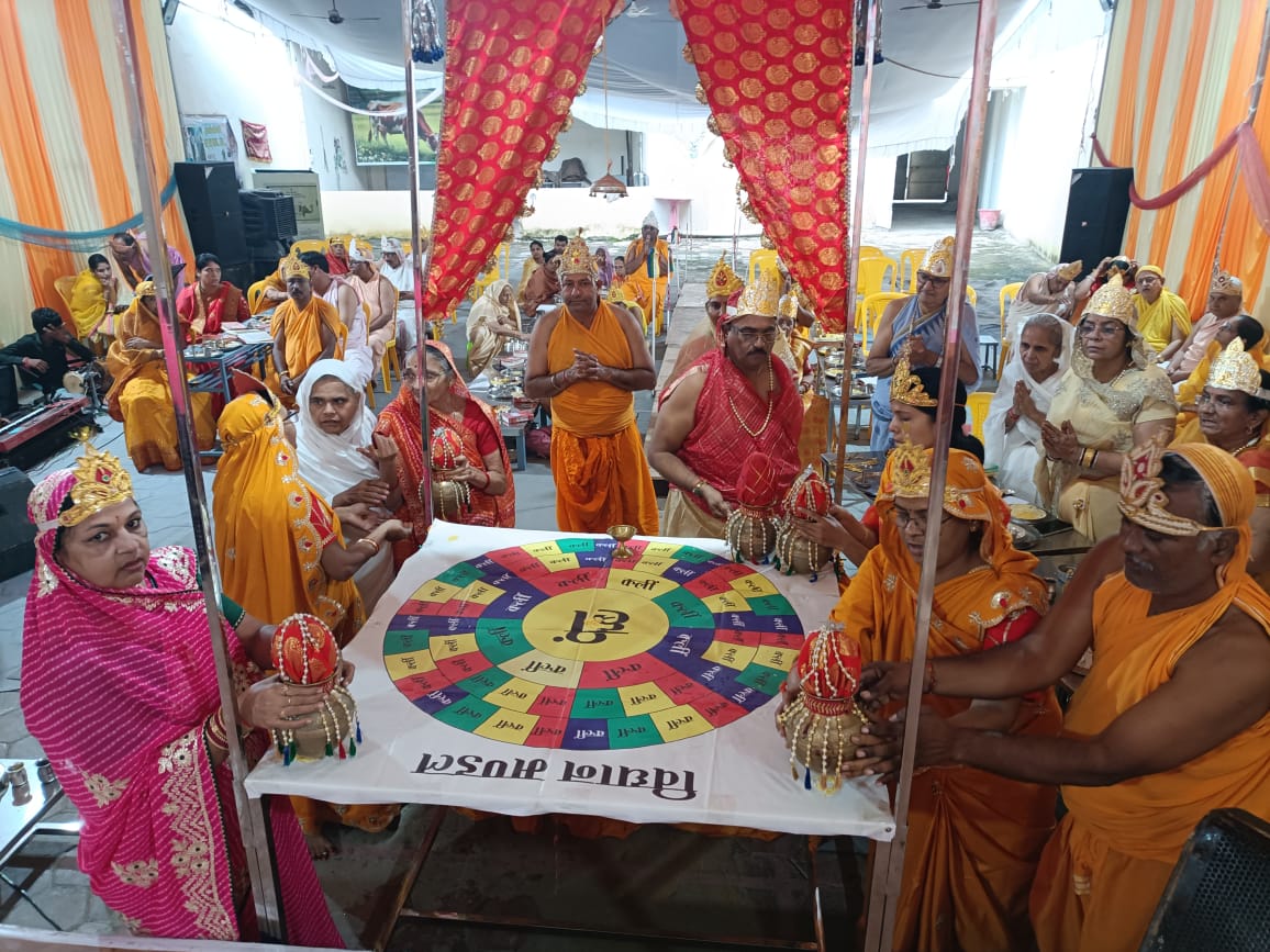 गुरुओं के चित्र अनावरण का सौभाग्य श्रीमती नीलम जैन, नीटू सिंह, और बादल जैन को प्राप्त हुआ, वहीं दीप प्रज्ज्वलन श्रीमती अलका चंदन और अंजना रावका ने किया।