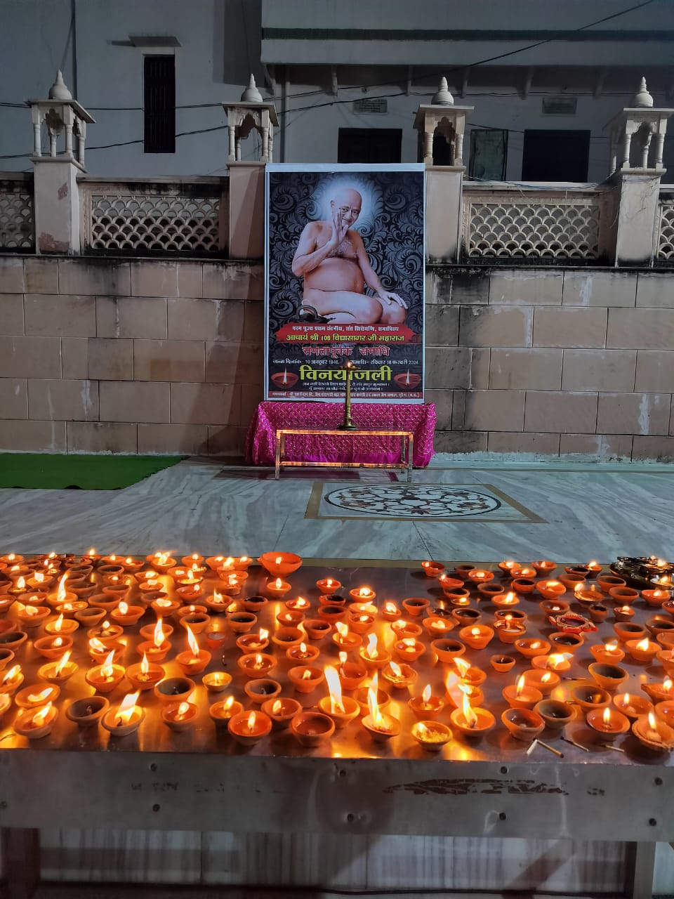 जैन तीर्थ चंद्रगिरी डोगरगढ में पूज्य गुरुदेव संत शिरोमणि दिगम्बराचार्य श्री विद्यासागर महाराज 17/18 फरवरी की मध्यरात्रि 02.35 पर समाधि प्राप्तकर ब्रह्मलीन हो गए। जैन समाज मुरैना द्वारा पूज्यश्री को श्रद्धासुमन अर्पित करने हेतु बड़े जैन मंदिर में विनयांजलि सभा का आयोजन किया गया। जिसमें सैकड़ों की संख्या में सधर्मी बंधु, माता बहिनें, युवा साथी सम्मिलित हुए। विनयांजलि सभा में सभी लोग अपने अपने घर से घी का दीपक लेकर आए थे। सभी ने दीप प्रज्वलित कर आचार्य श्री को श्रद्धा सुमन अर्पित किए। श्रद्धा सुमन अर्पित करते हुए वक्ताओं ने आचार्य श्री के संस्मरण सुनाते हुए उनके व्यक्तित्व एवं कृतित्व पर प्रकाश डाला।