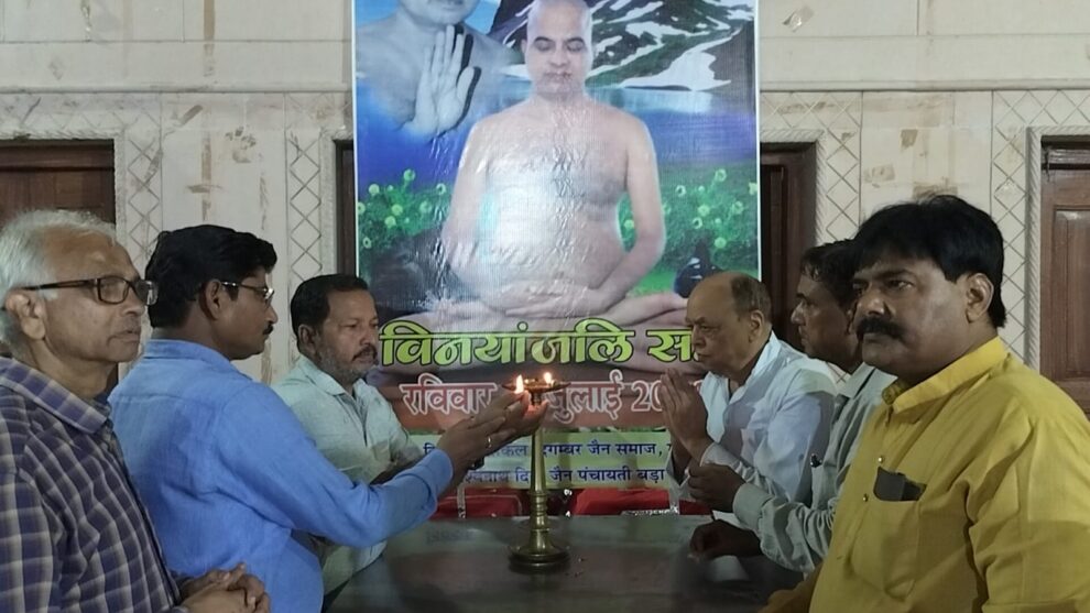 सभा के आरंभ में सामूहिक नमोकर महामंत्र का पाठ किया गया । उपस्थित सभी गुरुभक्तों ने दीप अर्पित कर अपने श्रद्धासुमन अर्पित करते हुए विनयांजलि दी। इस अवसर पर प्रेमचंद जैन बंदना, राजकुमार जैन राजू, विजय जैन मंत्री, महावीर प्रसाद जैन, आशीष जैन सोनू, ब्रजेश जैन दादा, अनिल नायक, पंकज जैन मेडिकल, कुशल जैन, नरेश जैन टिल्लू, रविंद्र जैन, नागेंद्र जैन दद्दू, सुभाष जैन, अशोक जैन मेडिकल, मुकेश जैन, अजय जैन, राकेश जैन, प्रदीप वरैया, जितेंद्र जैन, जैन छात्रावास के समस्त छात्रों सहित सैकड़ों की संख्या में गुरुभक्त बंधुवर, माताएं-बहिनें उपस्थित थे ।