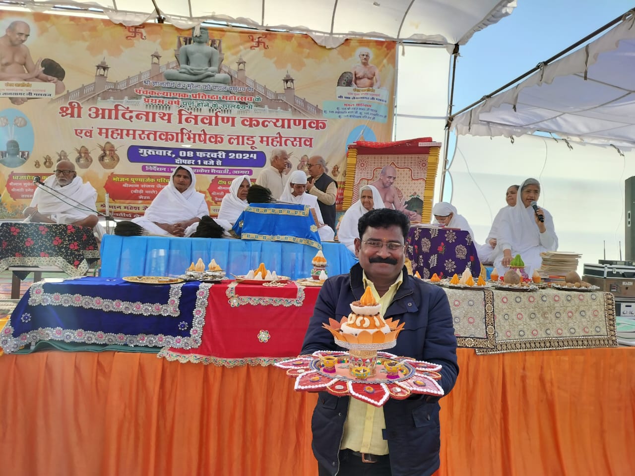 अपनी भक्ति भावना से ओतप्रोत, पीले परिधान में श्रावक-श्रावकाओं ने आदिनाथ भगवान की विशेष पूजा अर्चना की। प्रातःकालीन बेला में सभी ने मिल-जुलकर आदिनाथ स्वामी का जलाभिषेक, शांतिधारा एवं अष्टद्रव्य से पूजन किया। दोपहर को सामूहिक रूप से भगवान आदिनाथ की स्तुति की गई। इसके बाद 48 दीपों द्वारा श्री भक्तामर पाठ की संगीतमय आराधना की गई। महोत्सव के शुभारंभ में मुकेशकुमार जैन विटुमेन आगरा द्वारा ध्वजारोहण किया गया। दीप प्रज्वलन गुरुभक्त परिवार द्वारा किया गया।