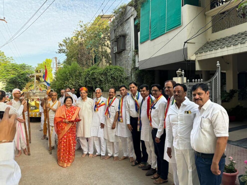 इंदौर। दिगंबर जैन सोशल ग्रुप फेडरेशन , दिगंबर जैन समाज सामाजिक संसद इंदौर , महावीर ट्रस्ट के संयुक्त तत्वाधान में आदिनाथ से महावीर जयंती तक 20 दिवसीय विशेष धर्म प्रभावना प्रभात फेरी का आयोजन किया जा रहा है। जिसके अंतर्गत 5 अप्रैल 2024 को प्रातः 7:00 बजे से श्री पारसनाथ दिगंबर जैन मंदिर विजयनगर से प्रभात फेरी का आयोजन किया गया। फेडरेशन के राष्ट्रीय अध्यक्ष राकेश जैन विनायका, सामाजिक संसद के अध्यक्ष श्री राजकुमार पाटोदी के नेतृत्व में दिगम्बर जैन सोशल ग्रुप ग्रेटर विजय नगर के अध्यक्ष श्री प्रदीप जैन ,सचिव आशीष जैन , दिगंबर जैन समाज विजयनगर ,महिला मंडल विजय नगर द्वारा विभिन्न मार्गो से श्री जी की शोभायात्रा निकाली गई।