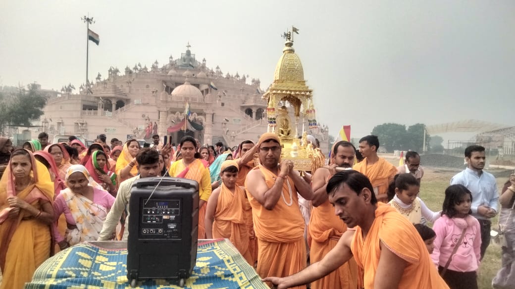 मुरैना। श्री सिद्धचक्र महामंडल एवं विश्व शांति महायज्ञ के समापन पर ज्ञानतीर्थ क्षेत्र में श्रीजी की भव्य शोभा यात्रा निकाली गई। ज्ञानतीर्थ पर विराजमान सप्तम पट्टाचार्य श्री ज्ञेयसागर महाराज, मुनिश्री ज्ञातसागर महाराज, मुनिश्री नियोगसागर महाराज, क्षुल्लक श्री सहजसागर महाराज के पावन सान्निध्य में 20 नवंबर को आठ दिवसीय सिद्धचक्र विधान का शुभारंभ हुआ था। विधान की सभी क्रियाएं प्रतिष्ठाचार्य अशोक शास्त्री लिधौरा व महेंद्रकुमार शास्त्री मुरैना ने सम्पन्न कराईं।