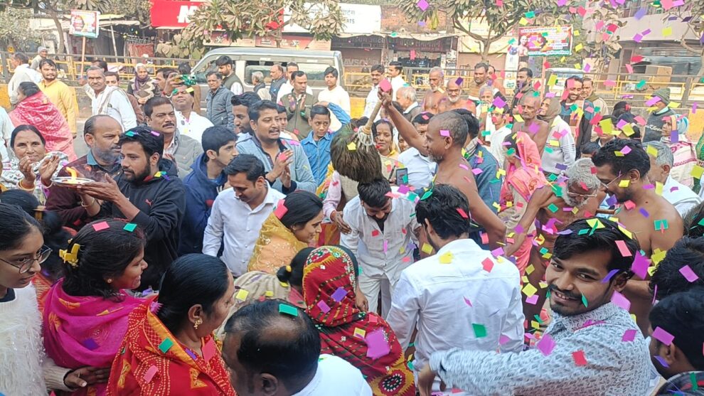 भिंड। दिल्ली से विहार करते हुए शुक्रवार को 14 वर्ष के बाद नगर की पावनधरा पर नगर गौरव मुनि श्री अनुमान सागर जी महाराज का भव्य मंगल प्रवेश हुआ। सकल जैन समाज ने बैंडबाजों एवं डोलनागाड़ों से अगवानी की। नगर में विराजमान आचार्य श्री सुबलसागर जी मुनिसंघ एवं मुनि श्री अनुकरण सागर जी महाराज से महामंगल मिलन हुआ। इंदिरा गाँधी चौराहे साधुओं का भव्य मिलन देख सभी समाजजन अभिभूत हो गए। मिलन के बाद शहर में प्रवेश हुआ। मुनि संघ का जगह-जगह पुष्प वर्षा, पादप्रक्षालन के साथ स्वागत वंदन और अभिनंदन हुआ। शहर के महावीरगंज में वचन कर रहे आचार्य श्री सुबल सागर जी महामुनिराज के चरणों में नमोस्तु बोलकर भव्य मिलन हुआ। एक ही मंच पर दोनों नगर गौरव विराजमान हुए। सैकड़ों की संख्या में लोगो ने धर्म लाभ लिया।