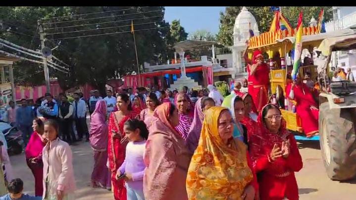 पूर्णाहुति देने के उपरांत श्रीजी की भव्य रथयात्रा निकाली गई। जिसमें श्रीजी रथ पर सवार होकर घोड़ा बगगी बच्चों, महिलाओं और पुरुष श्रद्धालुओं ने मार्ग में भक्ति नृत्य कर महावीर स्वामी के जयकारे लगाए। रथ यात्रा में श्रीजी को लेकर चल रहे श्रावकों के माथे पर स्थित रेखाएं अपने भाग्य पर इठलाती हुई प्रतीत हो रही थीं। रथयात्रा क्षेत्र की परिक्रमा लगाते हुए पुनः श्री शांतिनाथ दिगंबर जैन मंदिर जी पहुंची। जहां श्रीजी के अभिषेक-प्रक्षाल के बाद उन्हें वेदी पर विराजमान किया गया।