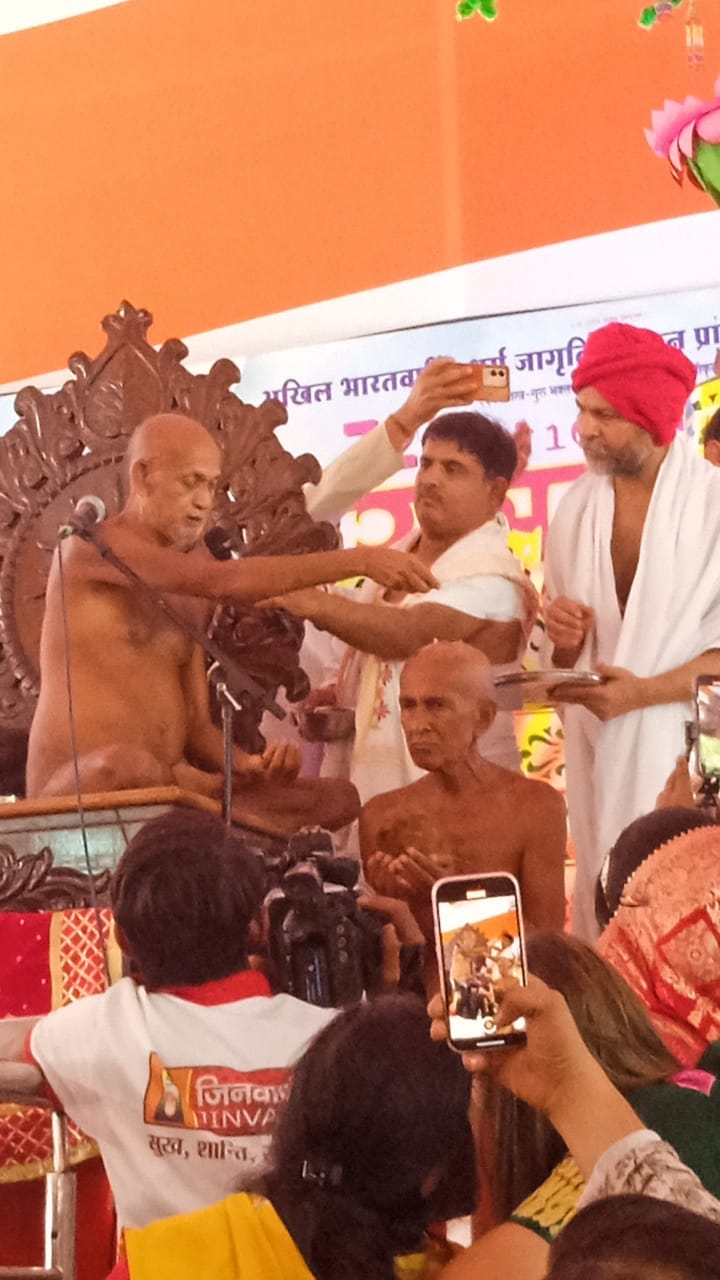 अंबाह। पदमपुरा में आचार्य श्री वसुनंदी जी महाराज के सानिध्य में रविवार को दिमनी चांदपुर निवासी ऐलक दयानंद सागर जी महाराज को मुनि पद की दीक्षा दी गई। दीक्षा की प्रक्रिया दोपहर 2 बजे शुरू हुई। दीक्षा के बाद उनका नाम मुनि शुद्धानंद सागर जी महाराज रखा गया। मुनि बनने से पहले ऐलक दयानंद जी ने आचार्य श्री से दीक्षा की प्रार्थना की थी। आचार्य श्री ने स्वीकृति दी। अक्टूबर 2024 में उन्होंने वसुनंदी जी महाराज से क्षुल्लक दीक्षा ली थी। जनवरी 2025 में ऐलक पद की दीक्षा प्राप्त की। इसके बाद रविवार को उन्हें मुनि पद की दीक्षा मिली। इस अवसर पर आचार्य वसुनंदी जी महाराज ने कहा कि दिगंबर अवस्था धारण किए बिना आत्मा परमात्मा नहीं बन सकती। मोक्ष की प्राप्ति भी नहीं होती। हर इंसान दिगंबर रूप में जन्म लेता है। मृत्यु के बाद कफन हटाना भी दिगंबरता का प्रतीक है। शुद्धानंद मुनि श्री के परिजन संतोष जैन, नीलेश जैन, रूपेश जैन और दीपक जैन ने बताया कि हमारे पिताजी ने जैन धर्म की महानता से प्रेरित होकर सर्वाेच्च मुनि पद प्राप्त किया है।