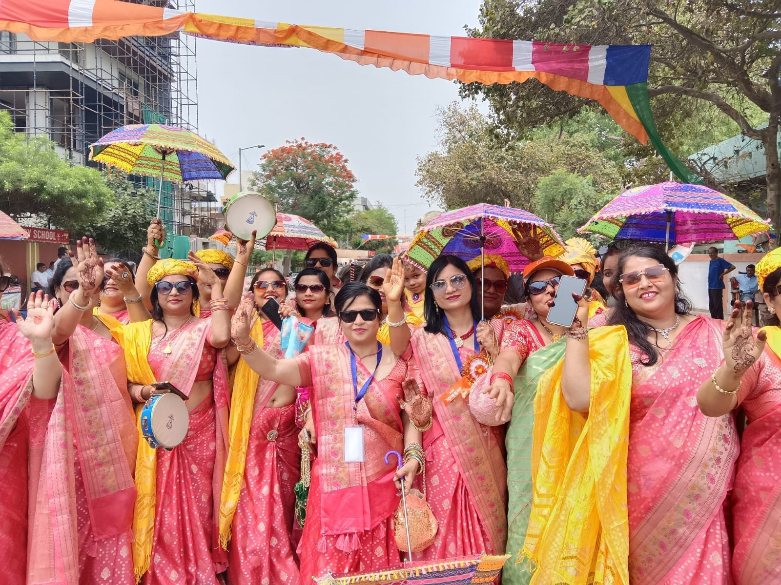 फुब्बारा चौराहे पर सलीम मोहम्मद जी के नेतृत्व में मुस्लिम समाज के लोगों ने पदाधिकारी का शाल पहनकर वह पुष्प वर्षा कर स्वागत किया गया। शोभायात्रा में महिलाएं अपने मण्डल की पोशाकों में केशरिया चुनरी, लाल चुनरी एवं राजस्थानी परिधान में मुख्य रथ के आगे डाण्डियां नृत्य करती हुई चल रही थी एवं पुरूष श्वेत वस्त्र धारण कर केशरिया दुपट्टा व सिर पर पगडिय़ां लगाकर भगवान महावीर के जयकारे लगाते हुए वातावरण को गुजायंमान कर रहे थे। इसके आगे उत्तर भारत का किशोर बैण्ड अपनी सुर मधुर सुर लहरियां बिखेरता हुआ चल रहा था। शोभायात्रा नगर भ्रमण के बाद अंहिसा चौक हरीपर्वत स्थित एम. डी. जैन. इण्टर कॉलेज के मैदान पर बने कुण्डलपुर नगर पर पहुंची। शोभायात्रा का कुण्डलपुर पहुंचने पर सौधर्म इन्द्रों द्वारा 1008 कलशों से रजतमयी पाण्डुक शिला 1008 पर अभिषेक किया गया तथा मुनिश्री ससंघ के प्रवचन हुए।