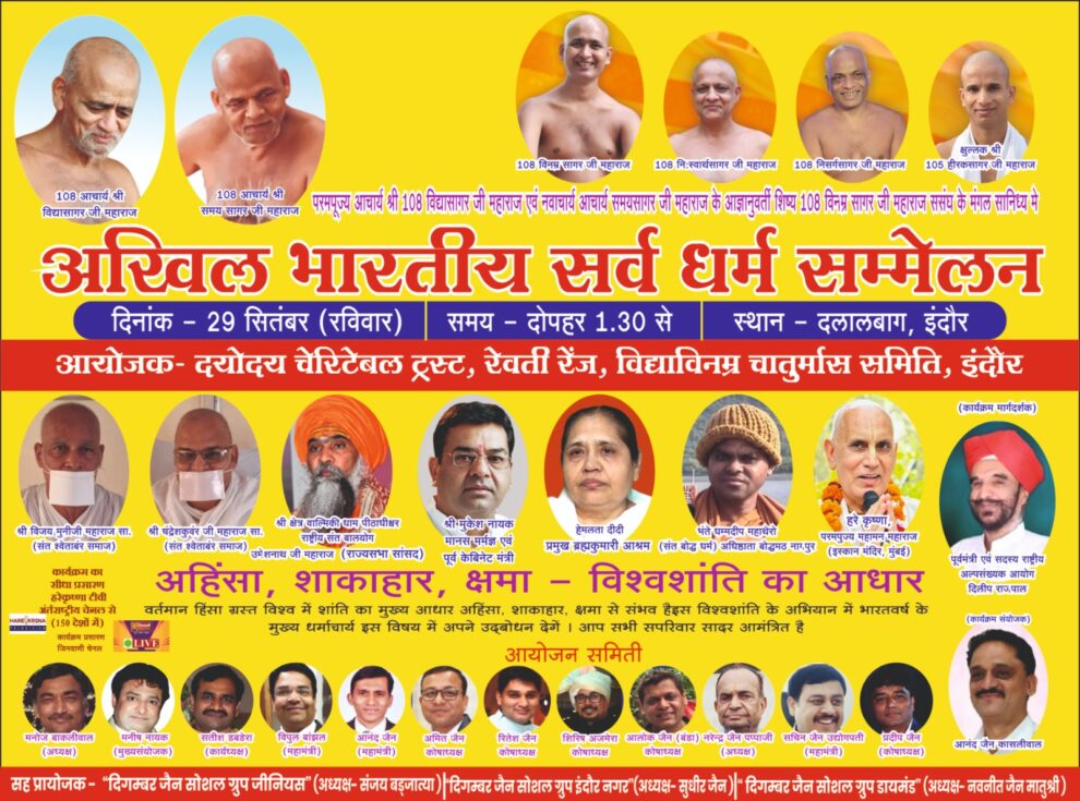 इंदौर (राजेश जैन दद्दू)। वर्तमान में सम्पूर्ण विश्व में हिंसा की समाप्ति और सद्भावना की स्थिरता की कामना के साथ, राष्ट्रीय स्तर के धर्माचार्य अपने विचार साझा करेंगे। धर्म समाज प्रचारक राजेश जैन दद्दू ने बताया कि 29 सितंबर, रविवार, दोपहर 1:30 बजे दलाल बाग, छत्रपति नगर में होने वाले सर्व धर्म समाज सम्मेलन में सपरिवार एवं मित्रों सहित सभी को सादर आमंत्रित किया गया है। यह सम्मेलन एक सुनहरा अवसर है जिसमें आप महान संतों के विचार सुन सकते हैं। सभी को इस अवसर का लाभ उठाने की सलाह दी गई है।