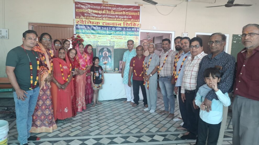 कुचामनसिटी। भगवान महावीर के 2624 वें जन्म कल्याणक महोत्सव, श्री राम जन्मोत्सव, नव वर्ष, हनुमान जयंती, डाॅ. अम्बेडकर जयंती पर जैन समाज, सर्व समाज, श्री जैन वीर मण्डल कुचामन सिटी, राजस्थान जैन सभा जयपुर के संयुक्त तत्वावधान में स्व. भवंरीदेवी धर्मपत्नी स्व. श्री भवंरलालजी डोेसी की स्मृति में डोसी परिवार द्वारा मानव सेवार्थ श्री जेडी जैैन इंग्लिश मीडियम सैकंडरी स्कूल के प्रांगण में रक्तदान शिविर लगाया। इसमें 54 यूनिट रक्त एकत्रित किया। मुख्य संयोजक सचिन गंगवाल ने बताया कि दानदाता परिवार केे दुलीचंद, सिद्धार्थ, गौरव, सोनू, मोनू डोसी परिवार और संस्था के सौभागमल गंगवाल, देवेन्द्र पहाड़िया, सुभाष पहाड़िया, अजित पहाड़िया, अजय पाटोदी ने भगवान महावीर के सामने दीप प्रज्वलन कर शिविर का शुभारंभ किया।