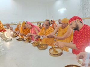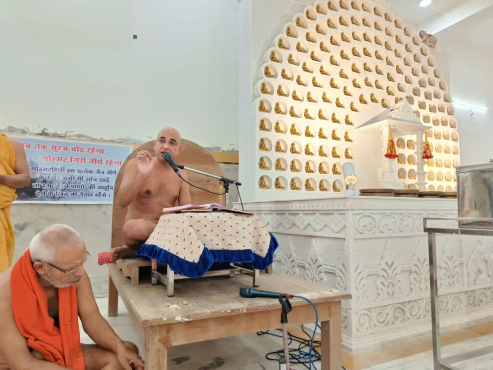 भगवान महावीर के 2550वें निर्वाण महोत्सव के उपलक्ष्य में आचार्य श्री अभिनंदन सागर जी महाराज के शिष्य अंतर्मुखी मुनि श्री पूज्य सागर जी महाराज एवं क्षुल्लक श्री अनुश्रमण सागर जी के सानिध्य में श्री पार्श्वनाथ दिगंबर जैन मंदिर विद्या पैलेस में वृहद श्री जिनसहस्त्र नाम स्त्रोत एवं भक्तामर मंत्र आराधना 51 परिवारों द्वारा की गई। इस अवसर पर मुनि श्री पूज्य सागर महाराज ने प्रवचन में कहा कि भगवान की भक्ति बिना स्वार्थ के करनी चाहिए। स्वार्थ के साथ की गई भक्ति का फल नहीं मिलता। भगवान की भक्ति से अनंत-अनंत जन्मों के पाप कर्म क्षण भर में नष्ट हो जाते हैं। पढ़िए यह विशेष रिपोर्ट…