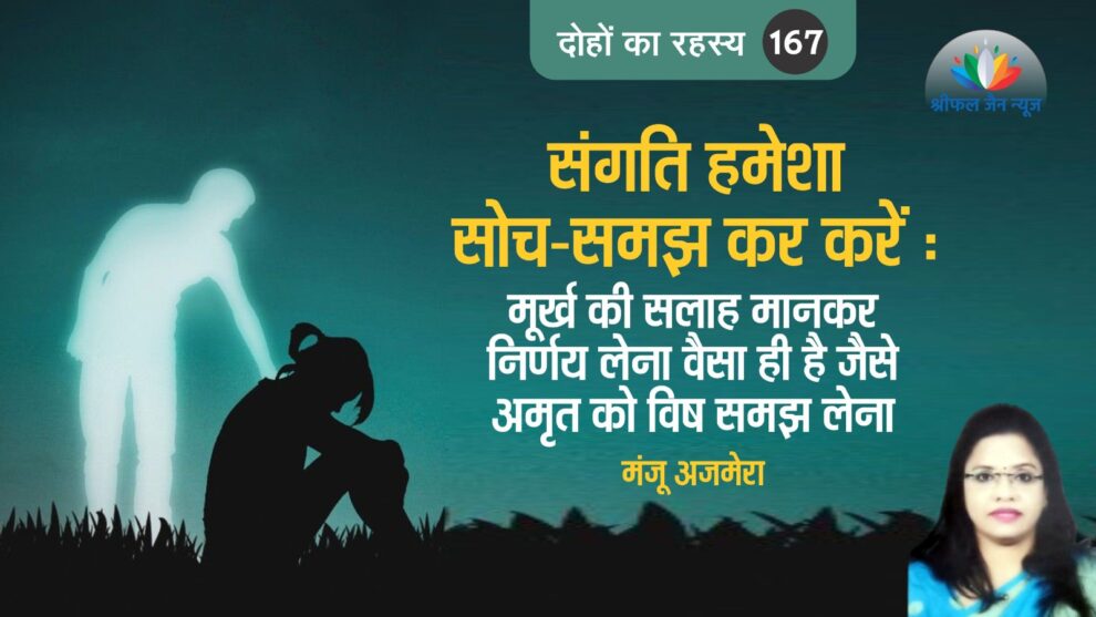 दोहों का रहस्य -167 संगति हमेशा सोच-समझ कर करें: मूर्ख की सलाह मानकर निर्णय लेना वैसा ही है जैसे अमृत को विष समझ लेना