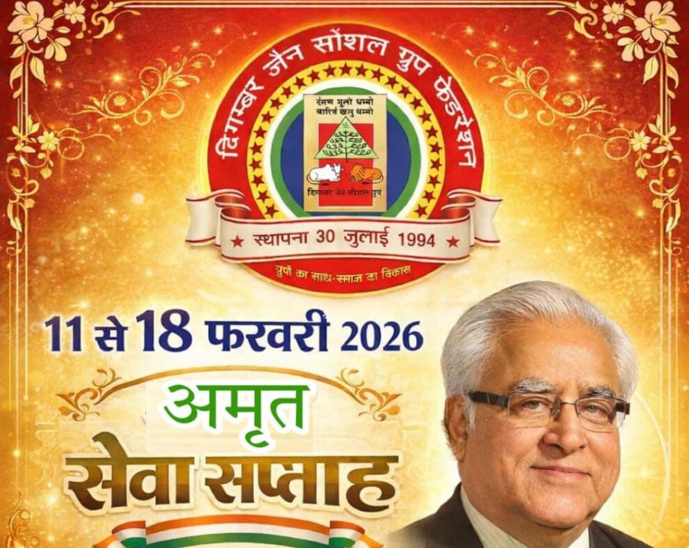 जबलपुर। मैं से हम की यात्रा के प्रेरक, दिगम्बर जैन सोशल ग्रुप फेडरेशन के संस्थापक अध्यक्ष जैनरत्न स्व. श्री प्रदीप कुमार सिंह जी कासलीवाल की 78वीं जन्म-जयंती के पावन अवसर पर 11 से 18 जनवरी तक अमृत सेवा सप्ताह का आयोजन किया जा रहा है। यह सेवा सप्ताह प्रतिवर्ष की भाँति इस वर्ष भी सामाजिक सरोकार, मानव सेवा और समर्पण की भावना के साथ मनाया जाएगा। राष्ट्रीय मीडिया संयोजक नितिन जैन ने बताया कि स्व. कासलीवाल की जन्म जयंती 13 जनवरी को सेवा दिवस के रूप में मनाई गई। जिसके अंतर्गत देशभर में दिगम्बर जैन सोशल ग्रुप फेडरेशन से जुड़े विभिन्न ग्रुपों द्वारा विविध सेवा गतिविधियाँ आयोजित की जा रही हैं।