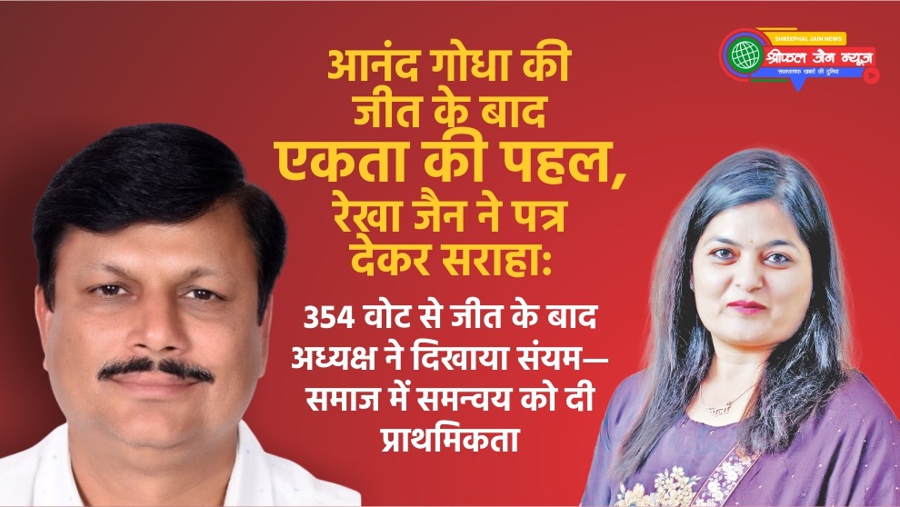 इंदौर दिगंबर जैन समाज के चुनाव में 354 वोट से जीत दर्ज करने वाले आनंद गोधा को संपादक रेखा जैन ने पत्र देकर बधाई दी। उनके एकता और समन्वय के फैसले को समाज के लिए सकारात्मक कदम बताया गया।