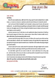 रेखा जैन ने अपने पत्र में पूज्य मुनि श्री पूज्य सागर महाराज के प्रवचनों का उल्लेख करते हुए कहा कि समय के अनुसार धर्म और समाज की रक्षा के लिए दृढ़ता जरूरी है—और आनंद गोधा में यह गुण स्पष्ट दिखाई देता है