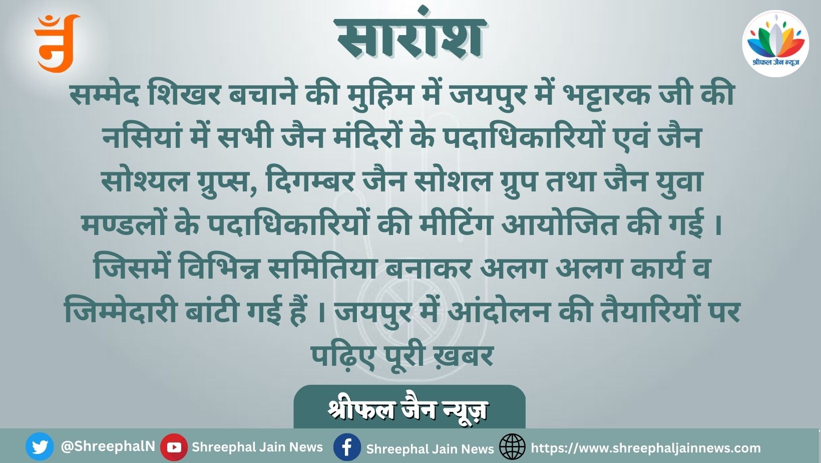 श्री सम्मेद शिखर बचाओ : आंदोलन की तैयारियां जोरों पर, राजस्थान में मिल रहा जबर्दस्त समर्थन