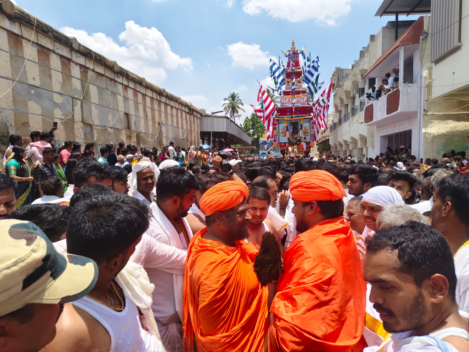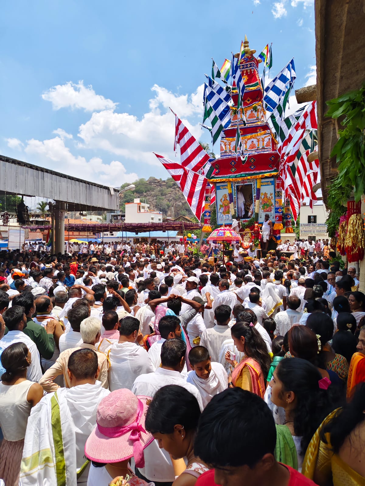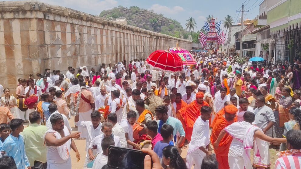 जैन मठ के सामने सजाए गए महारथ में उत्सव की मूर्तियां स्थापित की गईं, जिसके बाद भगवान ने रथ की पूजा की, एडुगाई को मारा, फल और फूल चढ़ाए और उसे रवाना किया।