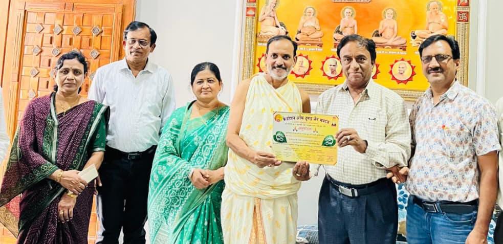 अरथूना। फेडरेशन ऑफ हूमड़ जैन समाज की ओर से ऐतिहासिक धर्म नगरी अरथूना में पर्यूषण पर्व में 16 उपवास की तपस्या करने वाले तपस्वियों के तप की अनुमोदना कर उनका बहुमान किया गया। आयोजन मे श्री पवित्रमती माताजी के मांगलिक सान्निध्य एवं आशीर्वाद के साथ फेडरेशन ऑफ हूमड़ जैन समाज के संस्थापक एवं राष्ट्रीय कार्यकारिणी सदस्य अजीत कोठिया, राजेंद्र कोठिया, महिला प्रकोष्ठ की निशा कोठिया ने सभी तपस्वियों के तप की अनुमोदना कर उन्हें सम्मानित किया। इस अवसर पर महेंद्र देवड़िया, संजय दोसी , महेंद्र दोसी, राहुल दोसी, सुनील दोसी, पलाश दोसी, मीनाक्षी शाह, रजनी दोसी, प्रीति शाह, कोमल शाह, मनीषा दोसी, पूजा शाह, मनीषा सुनील, वीणा पंचौरी तथा रंजना पंचोरी को फेडरेशन की ओर से शुभकामनाएं दी गई।
