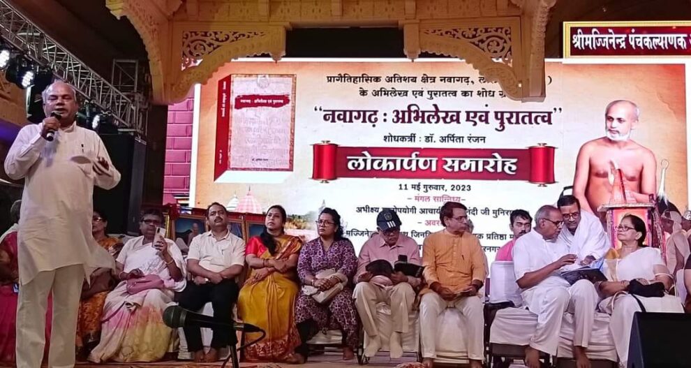 व्याख्यान वाचस्पति डॉ. श्रेयांस जैन बड़ौत ने कहा कि इस महत्वपूर्ण श्रमसाध्य अनुसंधान कार्य में शोधार्थी अर्पिता रंजन ने साक्ष्यों के आधार पर नवागढ़ के संबंध में अनेक तथ्यों को उद्घाटित किया है। इस ऐतिहासिक धरोहर को सहेजने में क्षेत्र के निर्देशक ब्र. जय निशांत भैया जी नवागढ़ तीर्थक्षेत्र कमेटी के साथ निरंतर प्रयासरत हैं। नवागढ़ कमेटी के प्रचार मंत्री डॉ सुनील संचय ने बताया कि नवागढ़ के पुरातात्विक एवं ऐतिहासिक महत्व को देखते हुए वर्तमान में भारतीय पुरातत्व सर्वेक्षण धरोहर भवन पुरालेख अनुभाग नई दिल्ली में सहायक अधीक्षण पुरालेखविद पद पर कार्यरत अर्पिता रंजन दिल्ली ने ‘नवागढ़ से प्राप्त संस्कृत अभिलेख एवं पुरातात्विक साक्ष्यों का समीक्षात्मक अध्ययन’ विषय पर अनुसंधान कार्य कर वीर कुंवर सिंह विश्वविद्यालय आरा के मानविकी संकाय से पीएचडी की उपाधि प्राप्त की है। उन्होंने यह महत्वपूर्ण शोध प्रबंध डॉ. श्रीप्रकाश राय आचार्य एवं अध्यक्ष संस्कृत विभाग वीर कुंवर सिंह विश्विद्यालय आरा के निर्देशन में पूर्ण किया है। इस शोध ग्रंथ को भारतीय ज्ञानपीठ, नई दिल्ली ने प्रकाशित किया है।