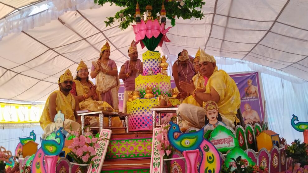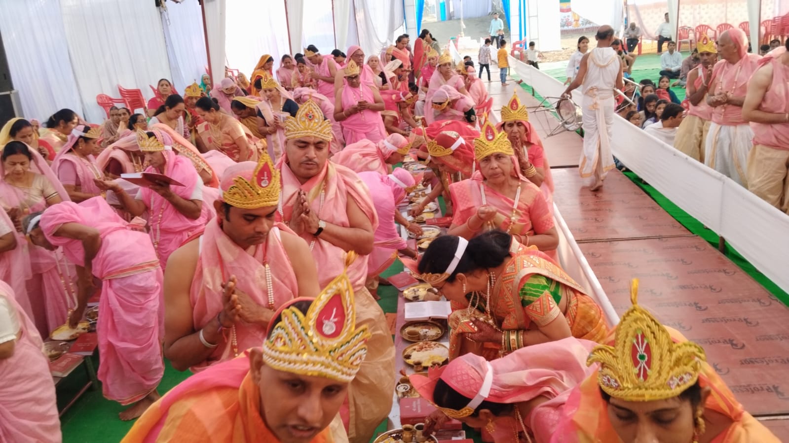 नौगामा। परम पूज्य पवित्र मति माताजी के सानिध्य में आज आदिनाथ मंदिर और भगवान महावीर समवशरण जी में विशेष शांति धारा अभिषेक के बाद सर्वतो भद्र पंडाल में ब्रह्मचारी अनिल भैया और इंदौर के विधानाचार्य रमेश गांधी के निर्देशन में श्रीजी का अभिषेक शांति धारा के साथ किया गया। इस अभिषेक का प्रथम अवसर पिंडारमिया के प्रदीप कुमार, रतनलाल पंचौरी, धनपाल और वर्धमान हॉस्पिटल परिवार बांसवाड़ा को प्राप्त हुआ। अभिषेक के बाद विधान के अर्घ्य का आयोजन किया गया, जिसमें गीतकार राजेश के मधुर स्वर लहरों के साथ महिलाओं और पुरुषों ने गरबा नृत्य करते हुए अर्घ्य चढ़ाए।