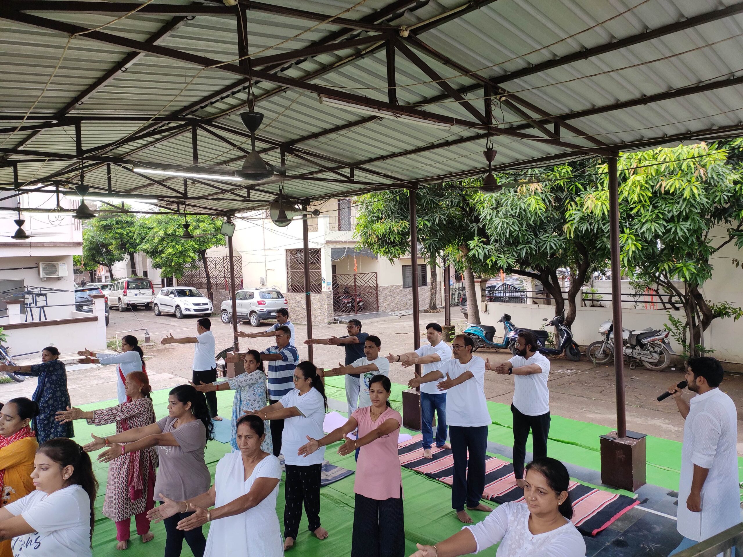 रायपुर। अर्हं ध्यान योग के प्रणेता मुनि श्री प्रणम्य सागर जी महाराज के आशीर्वाद से अर्जुन एन्क्लेव आवासीय सोसाइटी में अंतरराष्ट्रीय योग दिवस पर अर्हं ध्यान योग शिविर का आयोजन किया गया। संयोजक प्रभात जैन ने बताया कि योग प्रशिक्षक अन्तरपा पीयूष जैन एवं साक्षी जैन ने अर्हं ध्यान एवं आसन, हस्त उत्तान, हस्त पाद, कटी चक्र और मंडूक आसन कराए। उसके बाद फाइव क्लेप्स जो कि हमारे हाथों के एक्यूप्रेशर प्वाइंट्स पर आधारित है, इसके पश्चात पांच मुद्रा जो हमारे शरीर के पांचों केन्द्रों को एक्टिवेट करती है, को भी कराया गया। इसके उपरांत प्राणायाम और कायोत्सर्ग कराया गया। अर्हं नाद एवं पूज्य मुनि श्री प्रणम्य सागर जी महाराज जी की आवाज में प्रार्थना कराई गई। इस मौके पर डॉ. शैलेन्द्र भार्गव, योगी भैया, मनोहर अठवानी, मनोज सराफ, अवध राम साहू, साकेत पापड़ीवाल एवं महिला वर्ग से सीमा जैन, पूजा गुप्ता, चांदनी मूलचंदानी, गीता, विनीता, साधना, सुरभि ठाकुर, पुष्पा साहू, रिया, सभी लोगों ने यह प्रण लिया कि हम ध्यान और योग को अपने जीवन में उतारने की कोशिश करेंगे। अंत में लोगों से पूछा गया कि आप को यह तीन दिवसीय ध्यान एवं योग शिविर कैसा लगा। अपना अनुभव शेयर करते हुए सीके साहू ने बताया कि मुझे बहुत अच्छा लगा। एक सिस्टम से करना सीखा। नवीन अग्रवाल ने सभी का आभार व्यक्त किया और योग प्रशिक्षक पीयूष जैन एवं साक्षी जैन के प्रति आभार व्यक्त करते हुए कहा कि आप ने हम सोसाइटी वासियों को जगाया है।