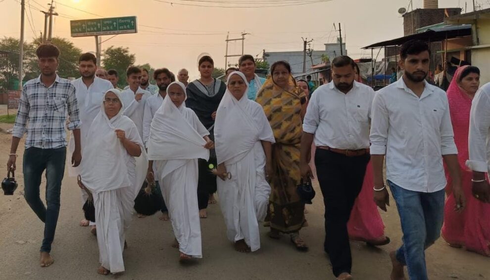 महरौनी( ललितपुर)। आध्यात्म जगत के सूर्य आचार्य भगवन विद्यासागर जी महाराज एवं आचार्य श्री समयसागर की परम शिष्या आर्यिका रत्न गुरुमति माताजी एवं दृणमति माता की संघस्थ आर्यिका धारणा मति आर्यिका मुदितमति एवं आर्यिका संयतमति का चतुर्मास महरौनी नगर में होना निश्चित हुआ है।आर्यिका रत्न धारणामति ससंघ का नगर में मंगल आगवनी सोमवार को प्रातः7 बजे हुई । जैन समाज ने पाली जाकर आर्यिका संघ की आगवानी की।